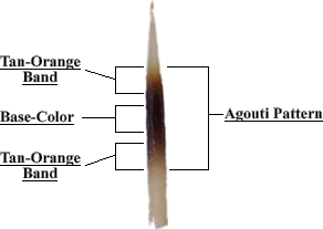One final note, pet African hedgehogs are agouti colored animals, light-bellied or white-bellied agouti to be specific (hybrids of both). All this means is that the type of melanin (color pigments) in the hair (or spine) changes from the black/brown eumelanin to the orange/yellow pheomelanin along the length of each hair (or spine). Note that on hedgehogs, the colors in the spines shift from beige/white, to tan/orange/yellow, to the base color, then to tan/orange/yellow again before returning to beige/white. This shift is known as an agouti pattern and is clearly present in hedgehogs. The white break on either side of the bands is not necessarily part of the agouti pattern, but is not uncommon- see tabby cats.