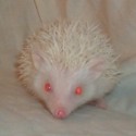 Albino {cc — — –}: While not technically a base color, albinism masks any colors that a hedgehog might genetically be. There is no pigmentation present in the skin, which is pink in appearance. No Pigmentation in the eyes, which appear red. And no pigmentation in the spines, which will be solid white. If there is any pigmentation present, then the hedgehog is not an albino.